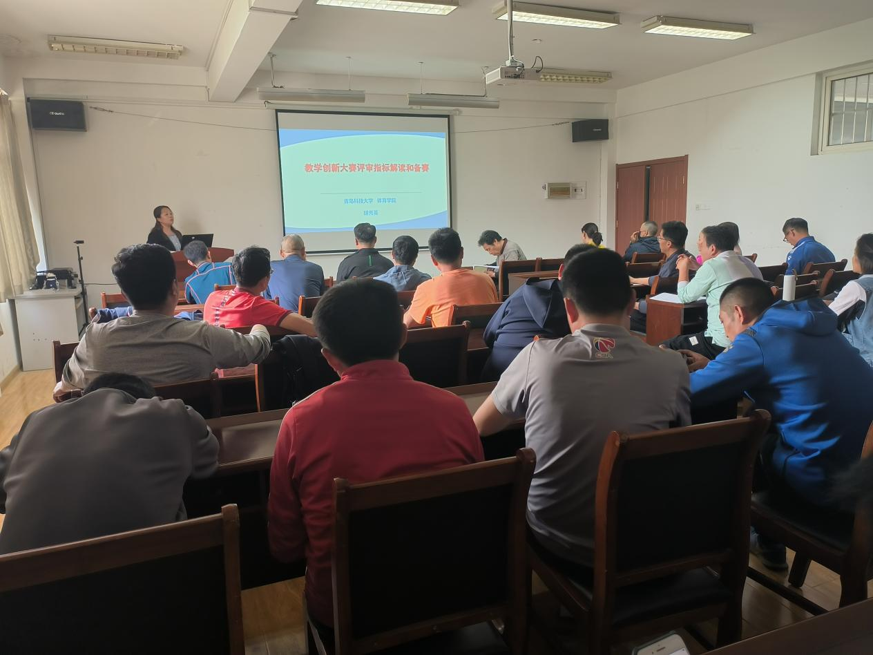 本次会议由休闲体育系胡秀英副教授进行经验分享,她对高校教师教学创新大赛的三个方面做了详细解读,一是对2023年山东省高校教师教学创新大赛的赛制、赛道等方面做了介绍;二是对教学创新大赛评审指标进行解读,帮助参赛老师做更充分的准备;三是对教师参赛准备及注意事项做了指导,帮助公司参赛老师更好完成比赛。