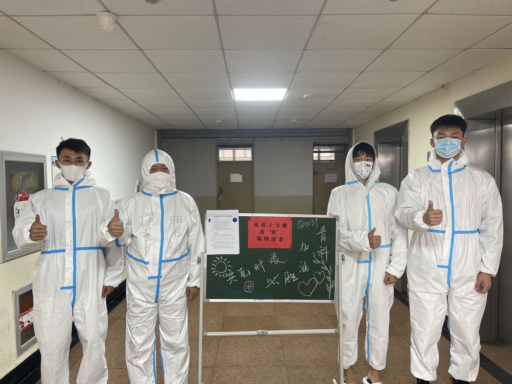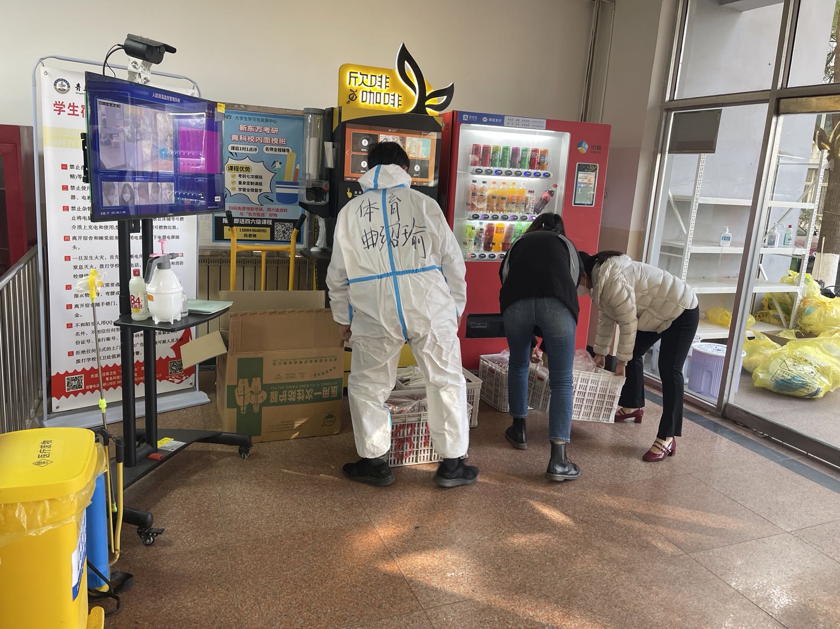 宿舍中,公司设置楼长、层长、舍长三级网格化管理联络机制,公司员工干部及员工党员无私奉献,踊跃投身志愿服务,他们协助上门核酸检测,准时配送免费的一日三餐,定时定点清理垃圾,尽最大努力服务同学。