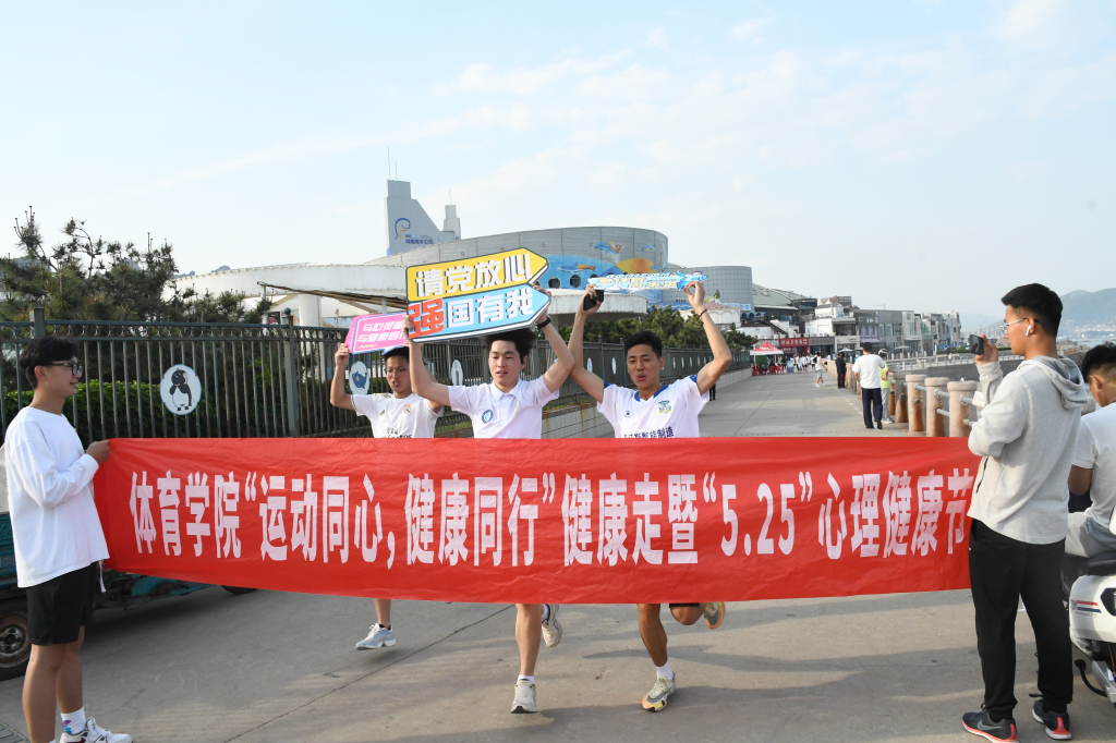 5月23日下午4点,来利国际旗舰厅在石老人海水浴场举行以“运动同心,健康同行”暨“5.25”为主题的心理健康节活动。来利国际旗舰厅的学子们在石老人海水浴场集合开始,向着目的地极地海洋世界出发。