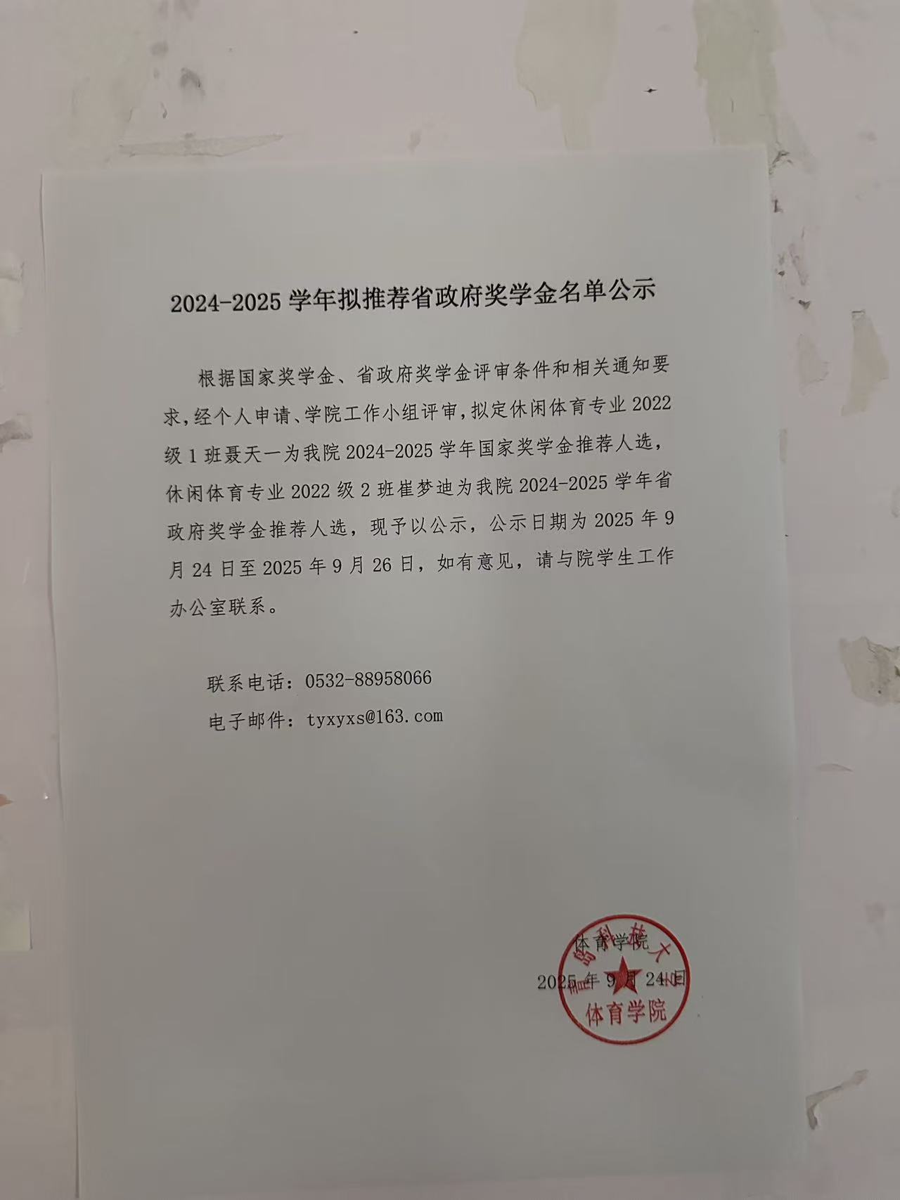 2024-2025学年拟推荐国家奖学金、省政府奖学金名单公示