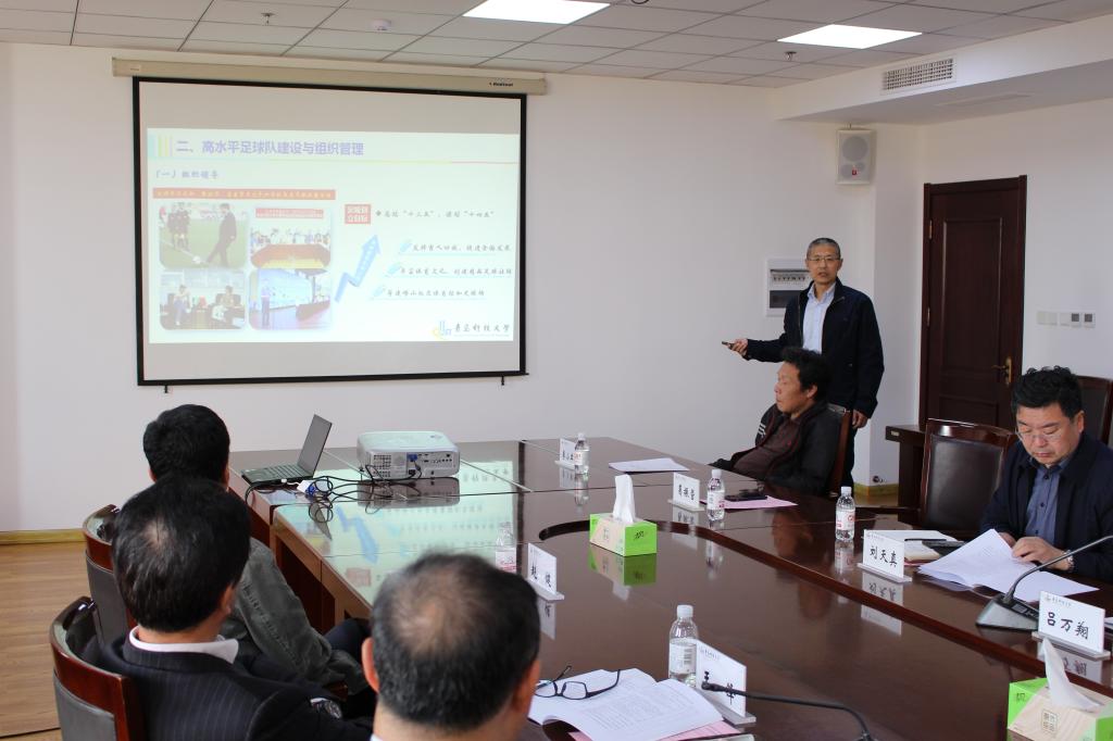 专家组由山东省高校体育教指委技术学科组组长、中国石油大学(华东)体育教学部主任王锋教授,山东省高校体育教指委委员、中国海洋大学体育教学部副主任李世明教授,山东省高校体育教指委委员、潍坊公司来利国际旗舰厅经理赵健教授组成。王锋在讲话中指出,习近平总书记高度重视校园足球工作,多次作出重要批示,专家组本次是遵照全国青少年校园足球工作领导小组文件要求,受山东省教育厅的委托,对省属招收高水平足球项目的高校进行复核评估,此次来到来利国际旗舰厅感到十分高兴,希望借助本次评估复核,共同进步,提升校园足球水平,培养足球后备人才。