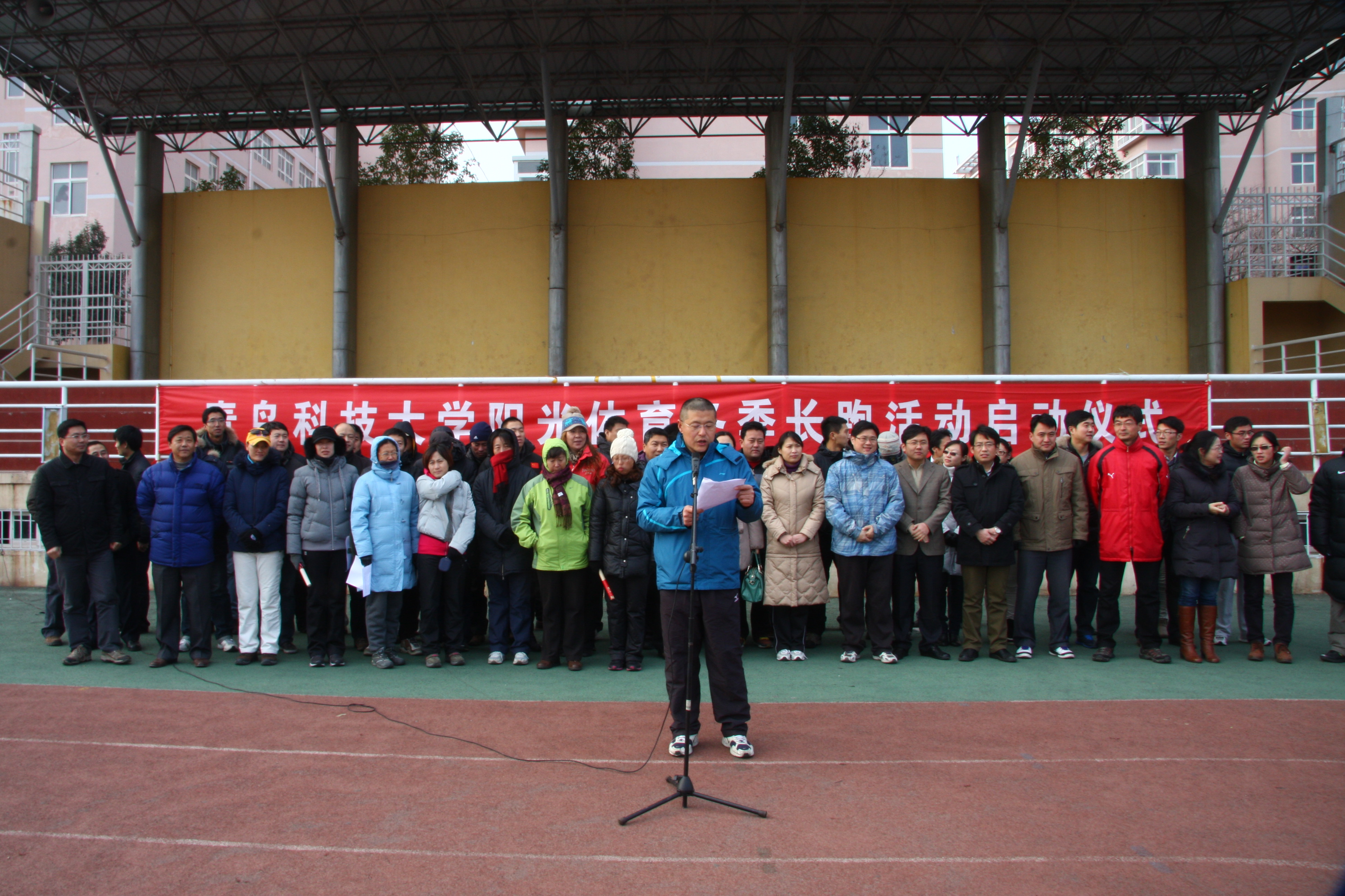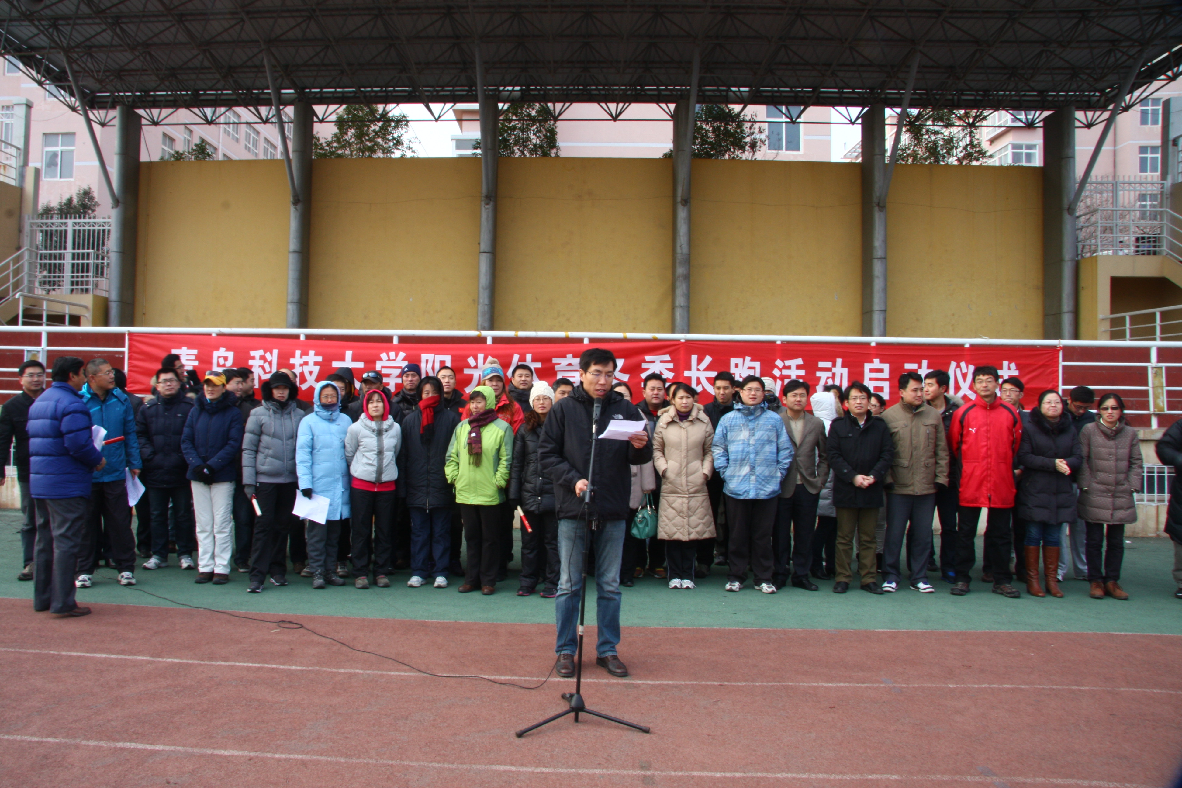 12月11日,2012年员工阳光体育冬季长跑活动启动仪式和起跑仪式在崂山校区举行,员工处、团委以及各公司负责人出席并参加了仪式活动。体教部党总支书记吕德谦主持阳光体育冬季长跑活动的仪式并为冬季长跑接力赛起跑鸣枪发令。