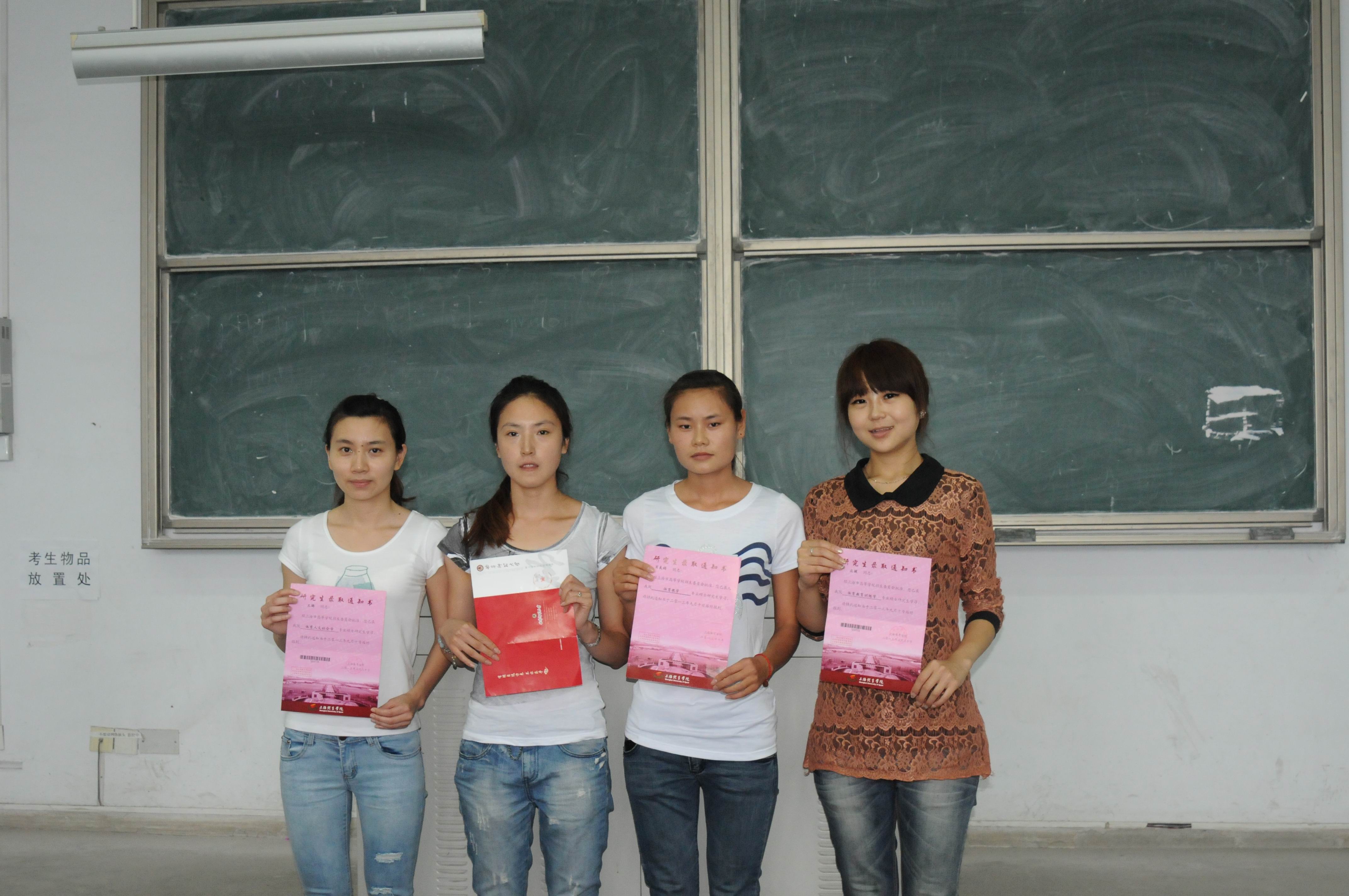 2013年体育教学部毕业生庄媛、王璐、肖美娟和吕梦媛分别考取了上海来利国际旗舰厅体育教育训练专业、上海来利国际旗舰厅体育人文社会学专业、上海来利国际旗舰厅体育教学专业、曲阜师范大学体育教学专业的研究生。这是体育教学部办学历史上的一个重要突破,6月27日下午,体育教学部召开大会对体育教学部工程11C、工程11D班庄媛、王璐、肖美娟和吕梦媛等四名同学进行了表彰。
