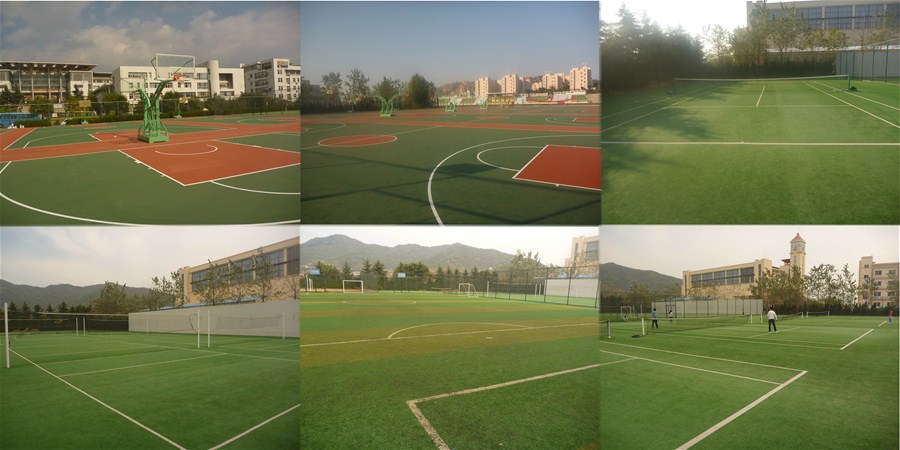 据了解,修缮前的体育场地,损坏严重,水泥地面年久失修,凹凸不平,存在很多安全隐患。体育教学部经过充分调研,在公司领导和有关部门的大力支持下,2013年,体教部组织修缮了崂山校区南区篮球场地10片、四方校区篮球场地10片(均采用硅PU材料),同时将崂山校区北区餐厅地下部分区域地面铺设硅PU材料,合理划分使用功能,建成了崂山校区室内体育教学场所。在此之前,2012年,体教部修缮了四方校区篮球场地六片、网球场地四片(场地均采用硅PU材料),崂山校区排球场地四片、网球场地四片、小足球场地一片、手球场改网球场场地一片(场地均采用人工草坪)。