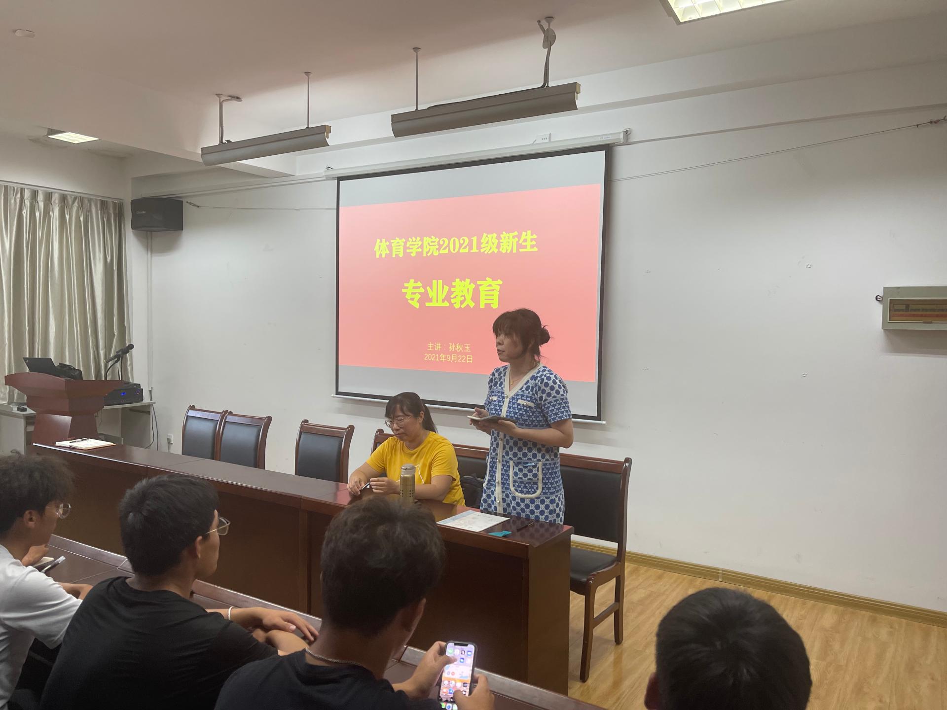 休闲体育系主任孙秋玉进行了专业教育,围绕老员工“学什么、怎么学”为新生进行讲解;学工办主任曲绍瑜讲解了公司疫情防控工作要求,针对人身财产安全、网络安全、防电信诈骗等内容开展了安全教育。