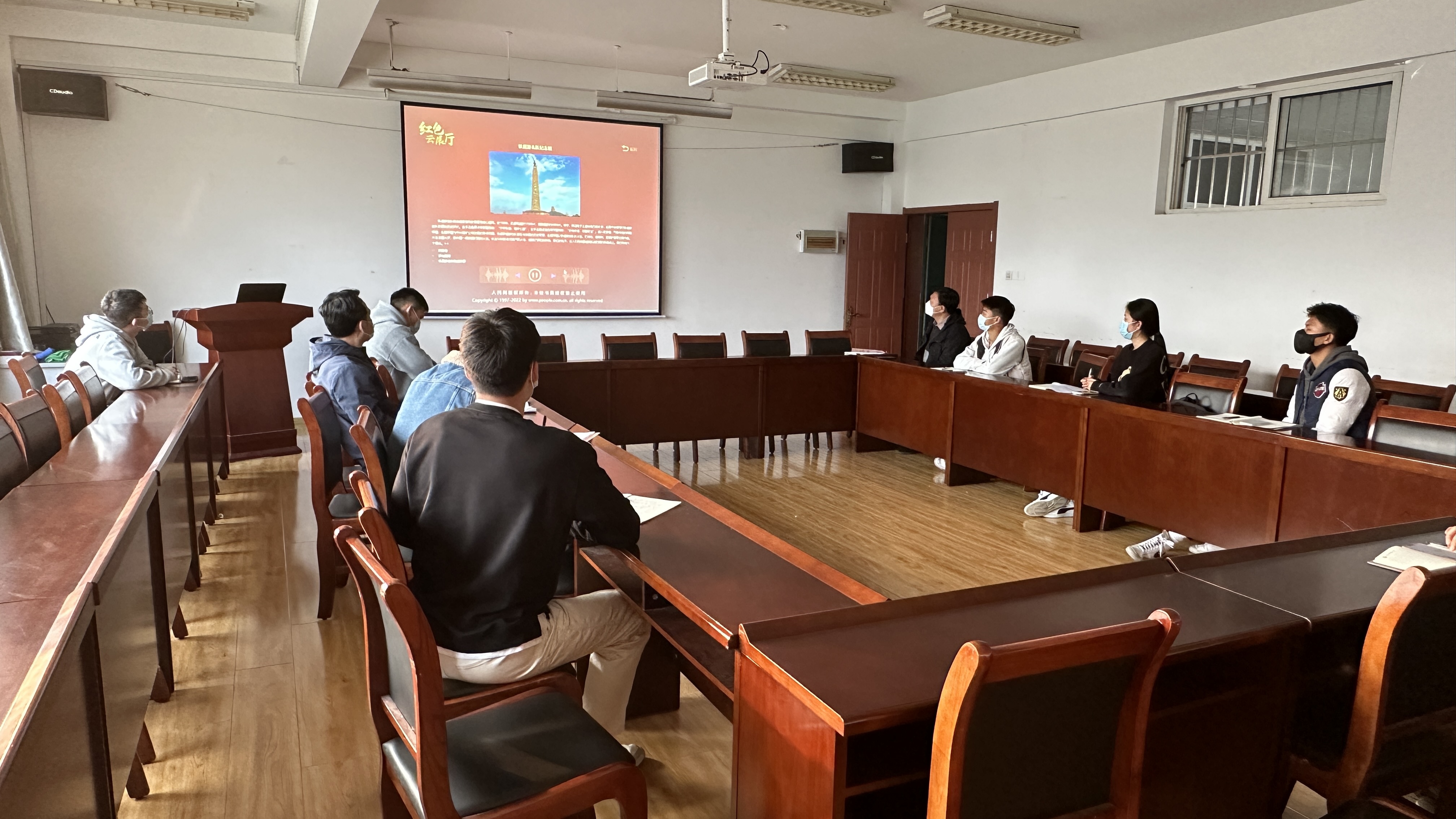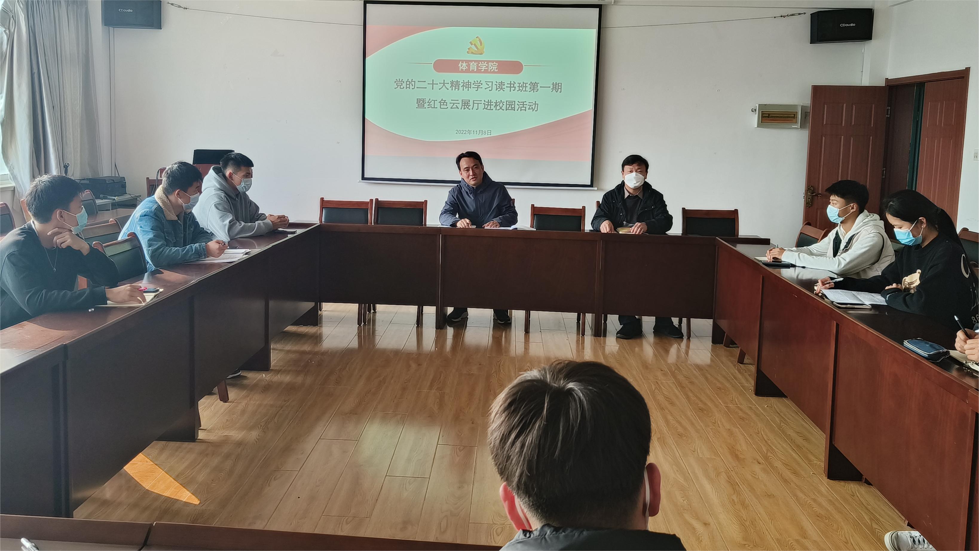 11月8日下午,体育公司党总支在公司301会议室开展学习党的二十大精神专题读书班暨红色云展厅进校园活动。体育公司党总支书记、经理张霄主持读书班学习。在校师生党员参加专题学习。