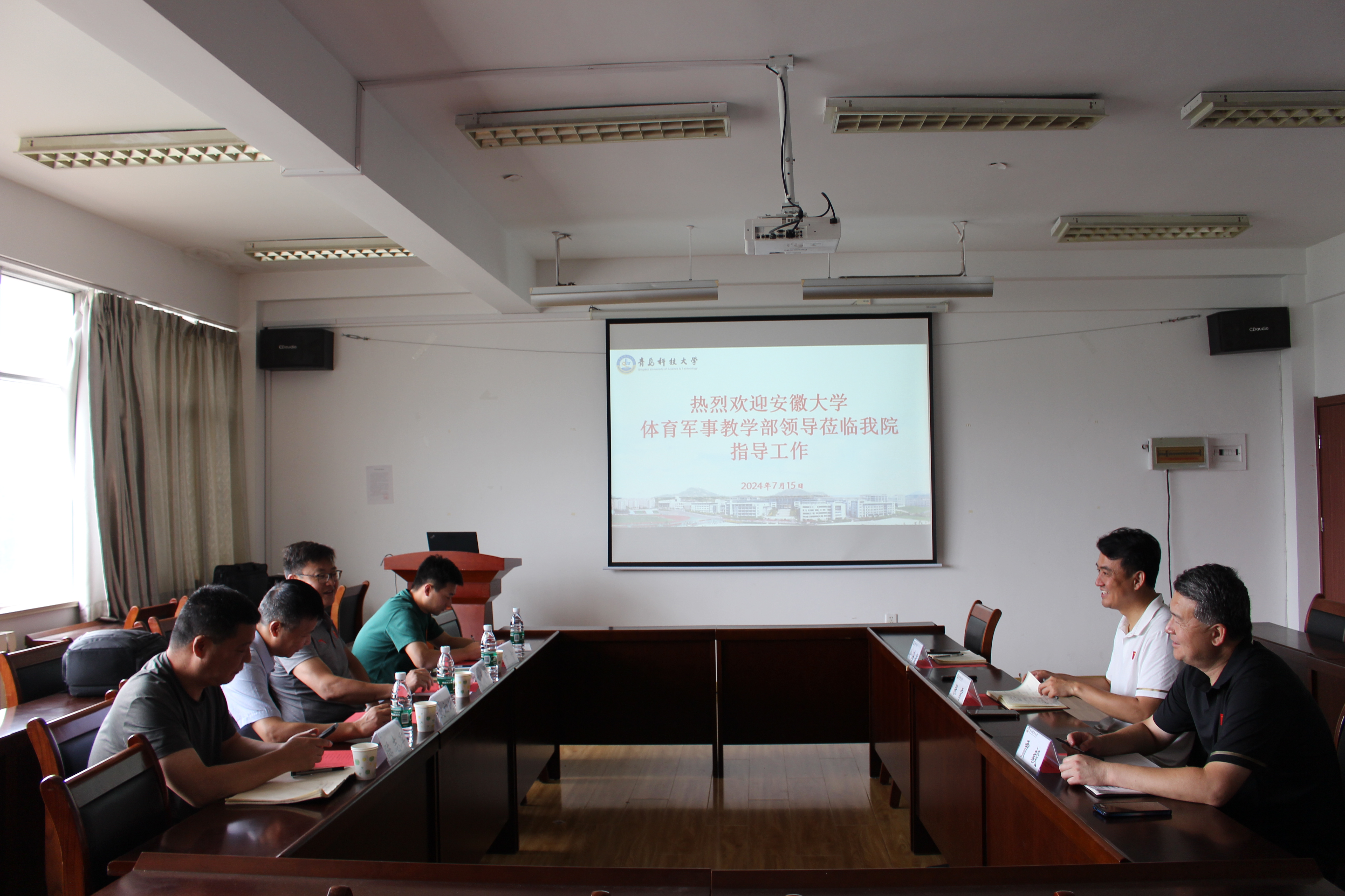 7月15日上午,安徽大学体育军事教学部党总支书记史初例,教学部主任孙高峰,教学部办公室主任陈志军,教学部体测中心主任卞智一行到公司开展调研交流工作。公司经理张霄,副经理贾毅,综合办公室主任徐海寰陪同参加交流会。会议由张霄主持。