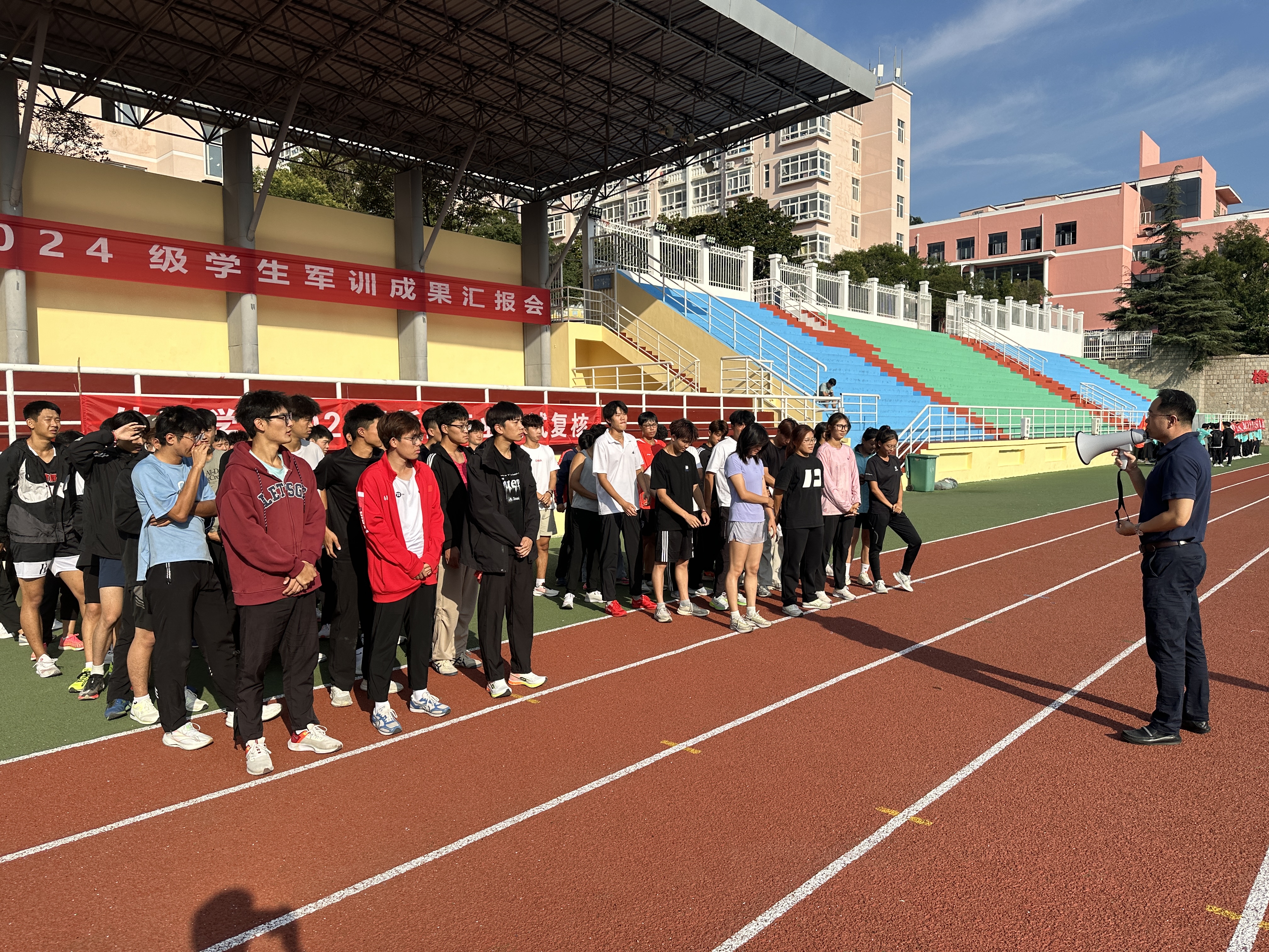 9月28日上午,2024级新生专业测试复核在崂山校区田径场进行,公司全体党政领导班子参加了本次复核测试。测试由周长吉主持。
