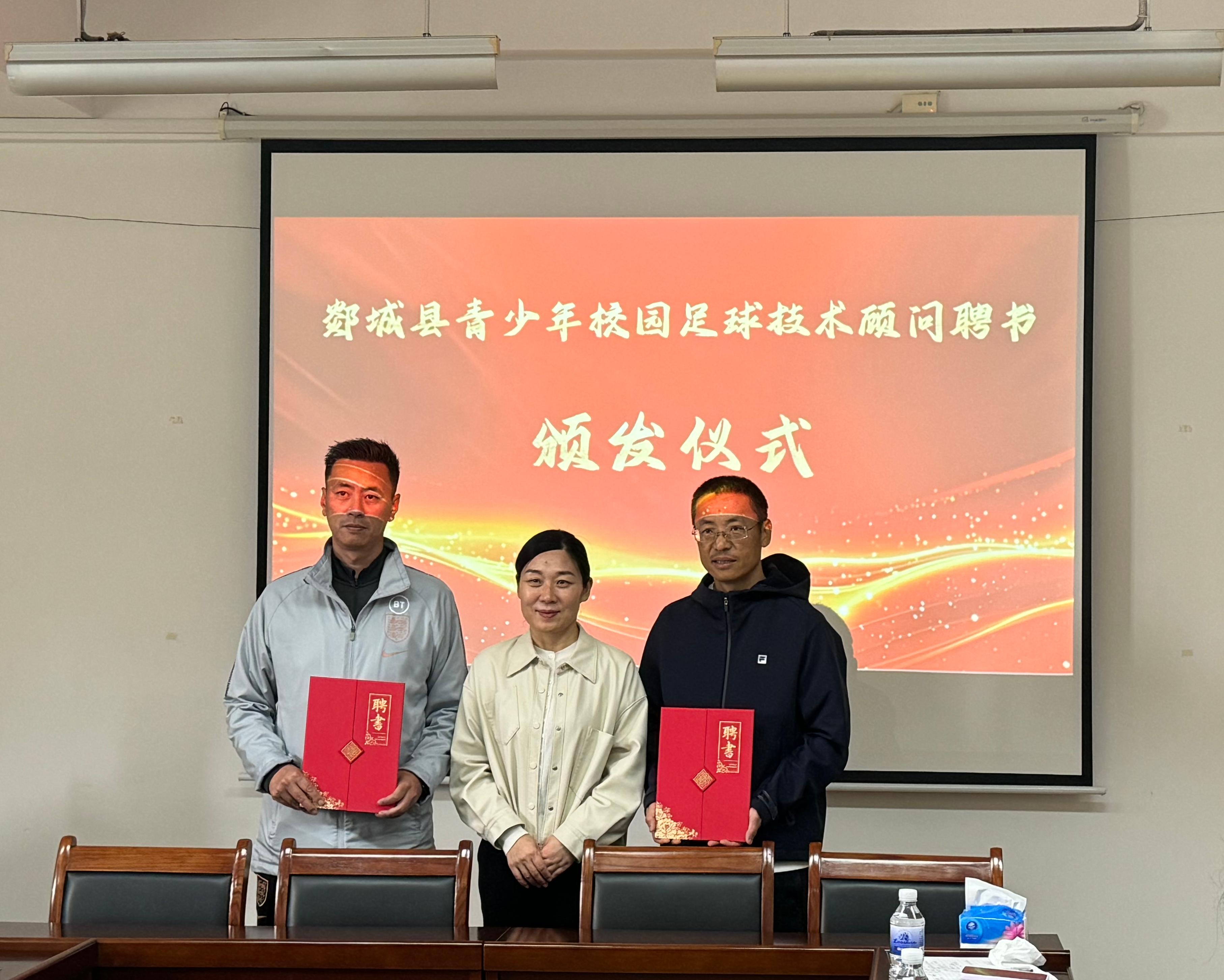 禚海燕代表郯城县人民政府对公司足球团队力量、竞赛成绩、体质健康检测等工作方面取得的成绩给予高度评价,并介绍了郯城县校园足球发展的相关情况。