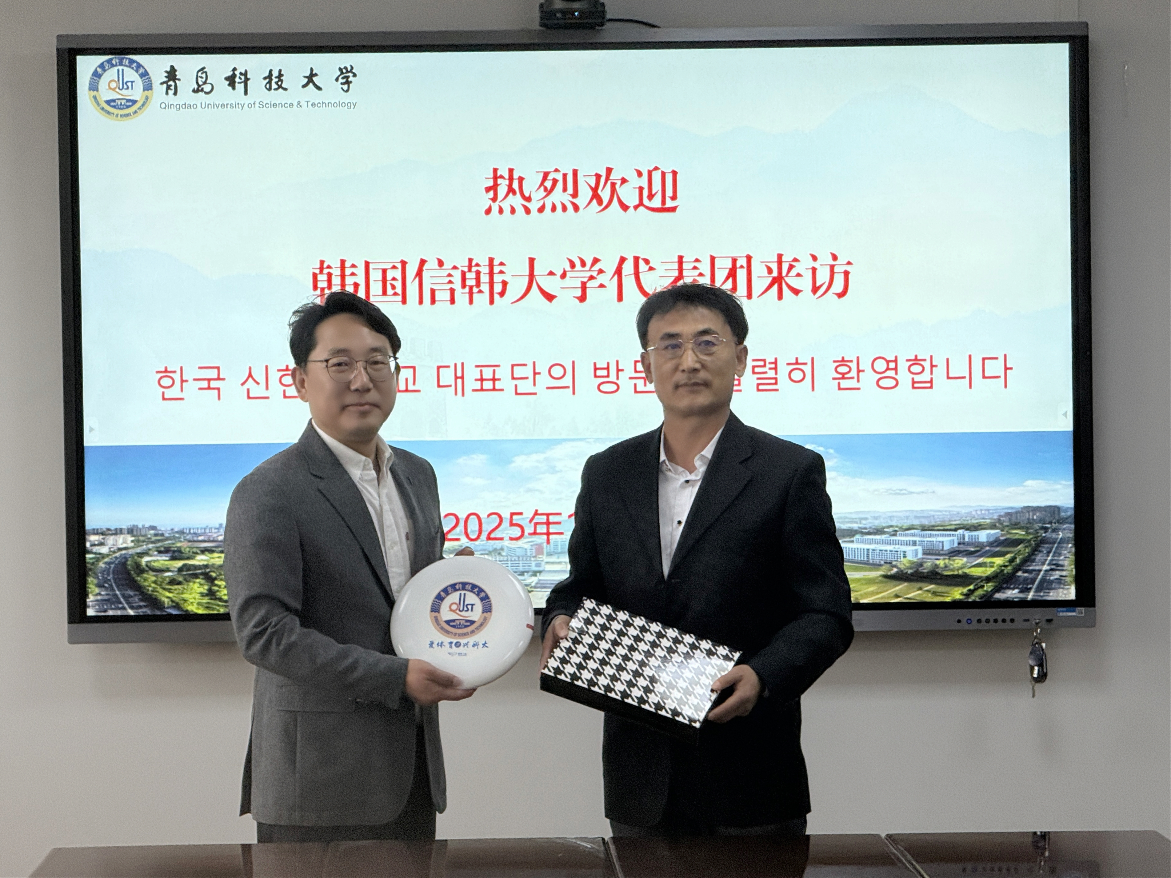 交流会上,杨中华和李炫代表双方公司互换礼物。活动期间,代表团参观了校史馆、智慧体测中心,观摩了校帆船队训练。