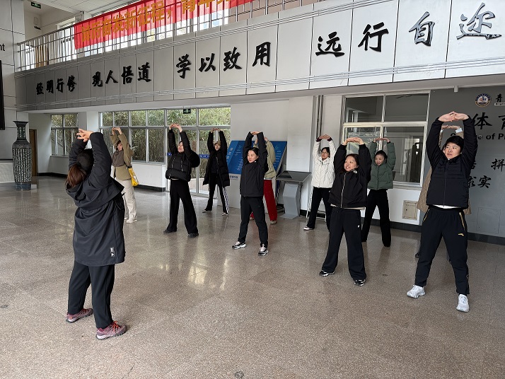活动中,老师们重点练习了“两手托天理三焦”与“左右开弓似射雕”两式,抬手托举调理三焦气机,扩胸拉弓舒展肩背经络,一招一式尽显刚柔相济之美。大家相互交流切磋,在放松身心的同时,感受传统养生功法的独特魅力。