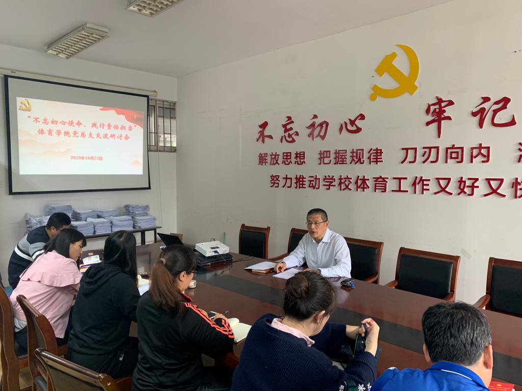 主题党课结束后,党总支还开展了“不忘初心使命、践行责任担当”主题交流会,本次交流的主题为“理想信念”和“宗旨性质”。葛振营在汇报中指出,作为一名党员领导干部,应该时刻筑牢守初心担使命的思想根基,牢记共产党人的性质和宗旨,利用一切机会学习党的理论知识,坚持“不忘初心”,做到“牢记使命”,让心中这盏指引前进方向的领航灯更明亮,让守初心、担使命的思想根基更坚固。在谈及个人思想及感悟时,他讲到,党员干部一是树立正确的群众观,开展一切工作都要以人民的利益为出发点,要带头坚决抵制官僚主义、形式主义作风,深切感受群众的需求;进一步提升党性修养,促使宗旨意识转化为外在行为。定期召开座谈会,听听年轻老师的看法,吸取老教师的建议,学学其他高校的优点,切实以群众为中心,推动公司工作发展;二是树立正确的事业观,要发扬敬业、精益、专注、创新的工匠精神,对细节高要求,把本职工作做出色,兼顾好主题教育工作、公司党务工作、体育课教学及日常其他工作,时刻做到带好头做表率;三是树立正确的价值观。共产党员在生活和工作中,要把人民的利益作为是否有价值的唯一标准,以实现共产党员的人生价值。在考虑问题、处理问题时,必须把人民利益放在最前面,一切以人民利益作为判断事物的是非、善恶的标准。
