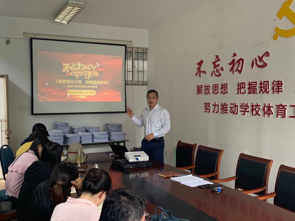 为推动“不忘初心、牢记使命”主题教育走向深入,根据公司党总支工作安排,10月22日下午,体育公司党总支副书记、副经理葛振营进行了一场题为“威武雄壮之师,扬我国威军威”的主题党课教育活动,公司全体师生党员参加。