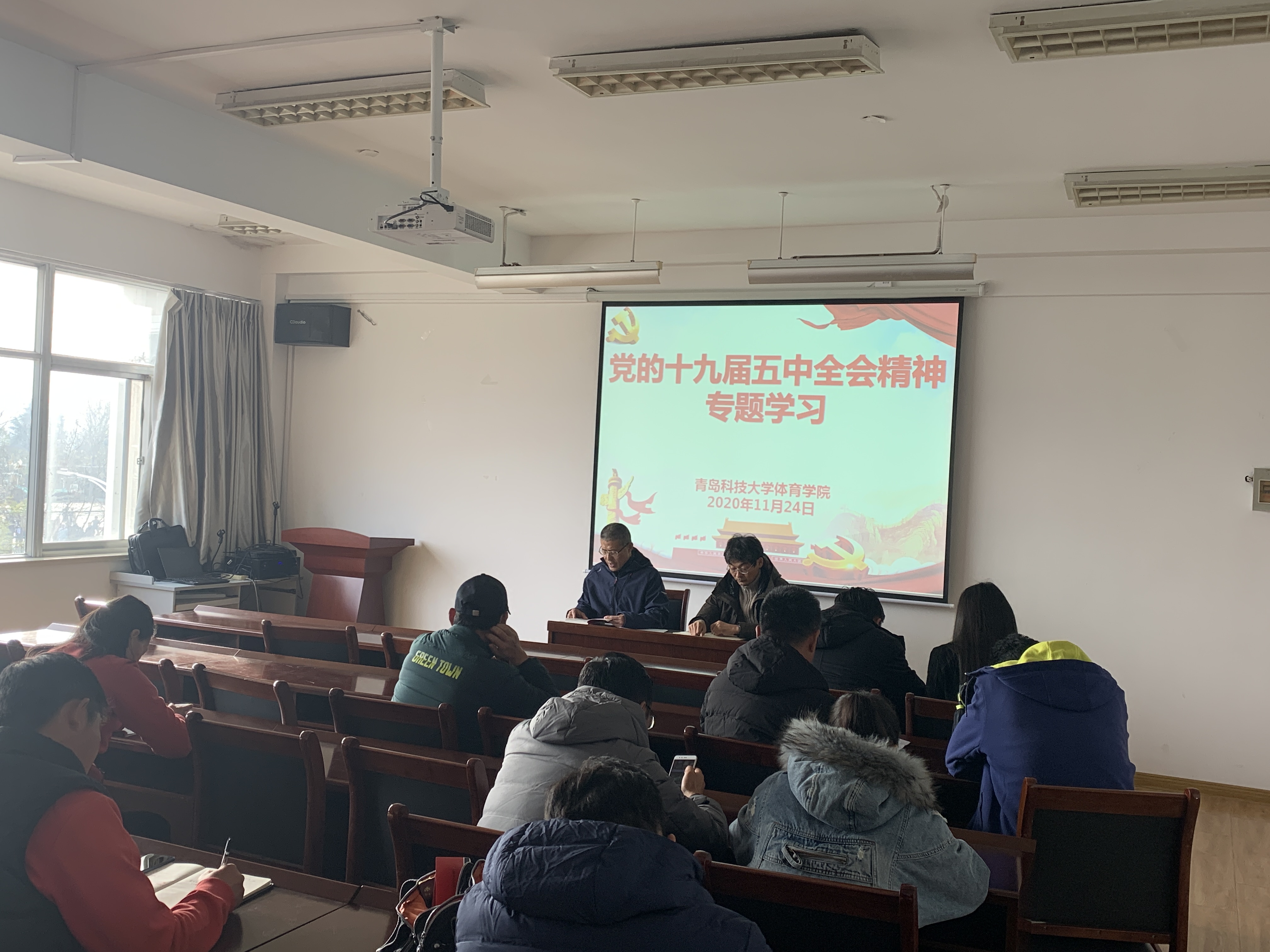 11月24日下午,体育公司党总支组织召开学习党的十九届五中全会公报暨2020年第十一次教职工集体政治理论学习。党总支副书记、经理葛振营,副经理楚晓东及全体教职工参加了本次大会。会议分两个阶段进行。
