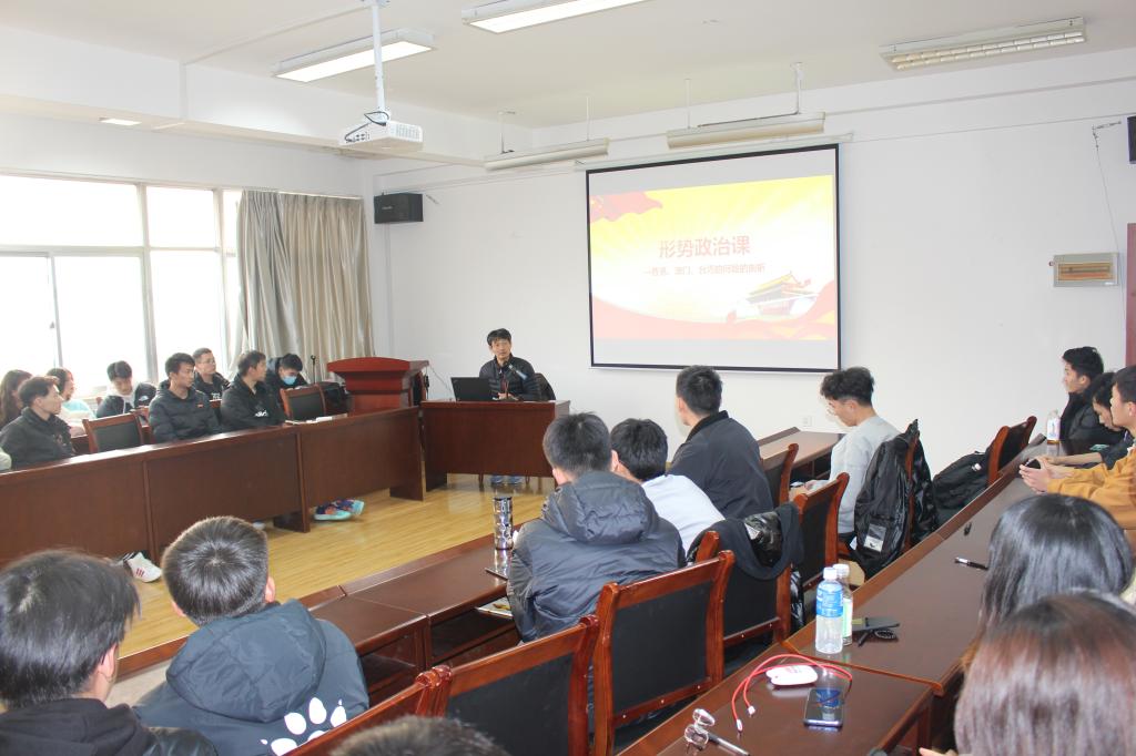 楚晓东结合形势政策课,对“澳门、香港、台湾”的现实问题进行深入剖析。他从澳门、香港问题的由来与解决引出两地回归祖国的重要意义,并以此为出发点与台湾问题进行比较。他指出,台湾政局变化,在两岸关系历史进程中不过是过眼云烟,从根本上说,决定台湾前途、两岸关系走向的关键因素是大陆的发展进步,我们要相信,在以习近平同志为核心的党中央坚强领导下,两岸同胞携手同心,一定能维护好两岸关系和平发展大局基本稳定,一定能继续推动两岸关系克难前行,一定能将中华民族伟大复兴的中国梦一步步变成现实。